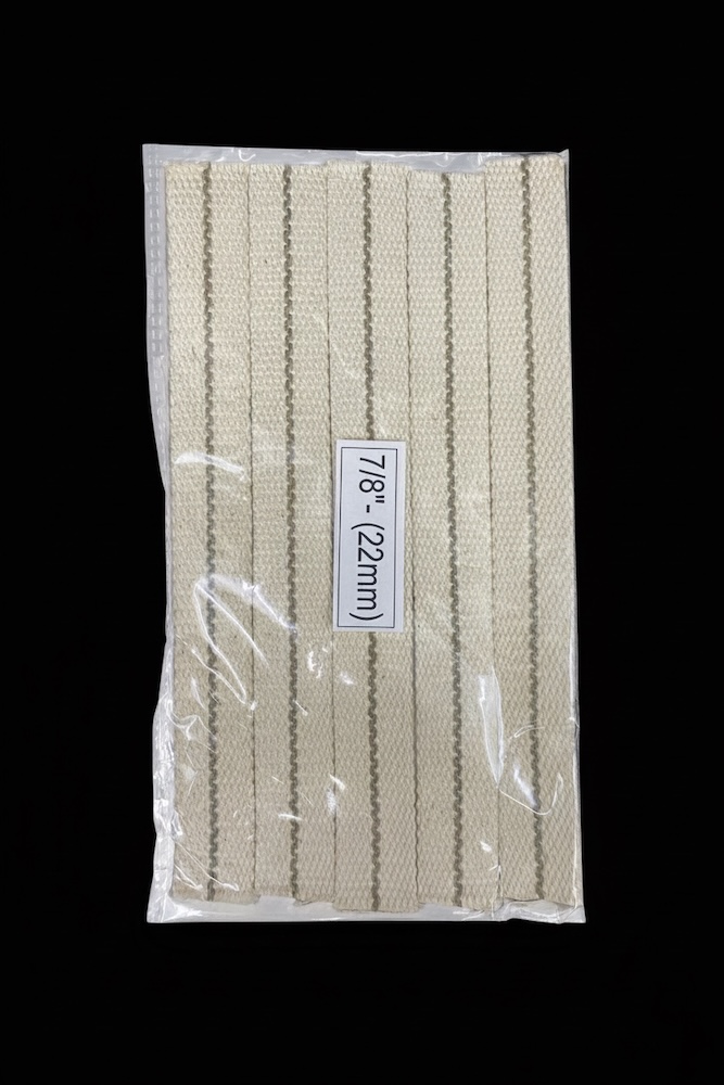 One set of 7/8″ wicks is 5 x 8″ pieces; approximately 40″ total. A very common wick size for many different lamps using Queen Anne #2 Burners.