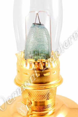 Burns Aladdin brand Lamp Oil or Kerosene. 24″ Tall with the Glass Chimney. 10″ diameter shade, with brass shade ring included. Proudly designed and assembled in the USA!