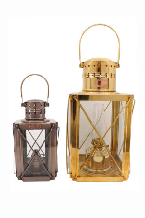 Clean lines and a distinct cross bar design are featured in our new Cargo Lantern. Heavy gauge brass, and a weather resistant design allow this lamp to work as well outdoors and it can inside.