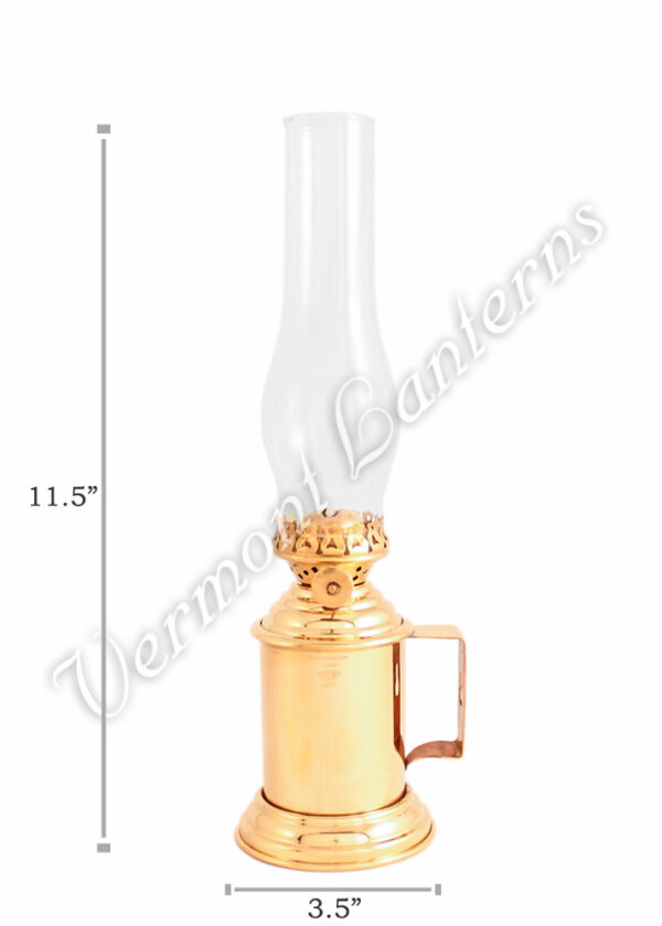 Redesigned burner for 2022, with improved light output. Our Brass Tavern Mug Oil Lanterns are an all time favorite for their versatility. Place them on a table or mount on the wall using the screw slot, even carried easily in the hand with the help of the permanently attached handle. With it’s large fuel capacity for it’s size and affordable price, this is one of our most popular and practical oil lanterns. Looks great on restaurant walls, or in home decorations.