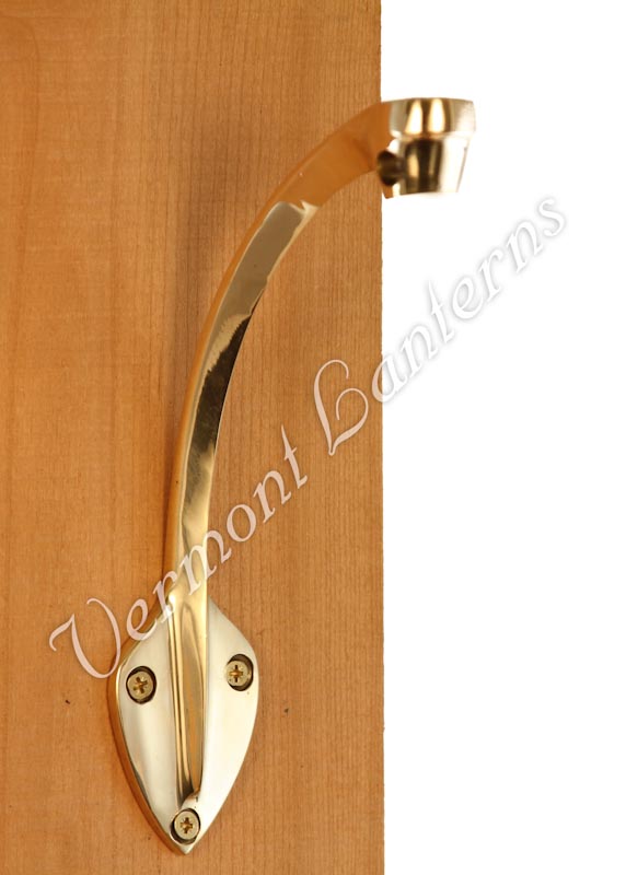 Vermont Lanterns Solid Brass Lantern Hook, that fastens with three brass screws (included) to a wall or bulkhead so that your yacht lamp can hang and swing freely. Fits our Miners 9944 series and Weems & Plath models.